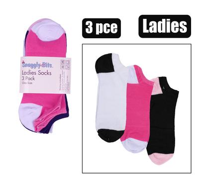 Socks ladies anklet 3pc col heel&toe